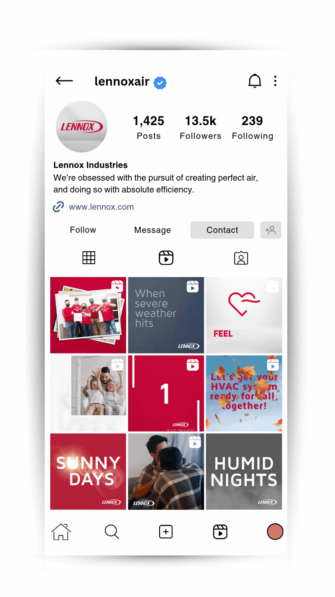 Lennox is a global provider of climate control solutions for the heating, air conditioning, and refrigeration markets. As part of my responsibilities, I developed content for Lennox's social media accounts, including Instagram, Facebook, and LinkedIn. My content design focused heavily on engaging and animated posts, covering a range of topics from disaster preparedness to holiday promotions. Working with the creative team, I developed a design system and templates that created a unique and ownable look and feel.